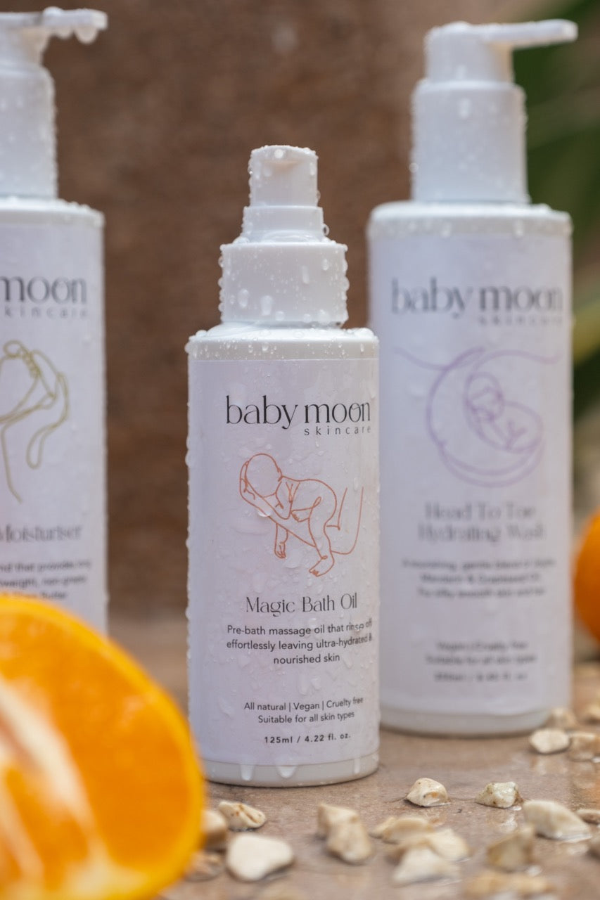 Our Magic Bath Oil is infused with Jojoba Oil, Vitamin E & Shea Oil to provide intense hydration for delicate skin.