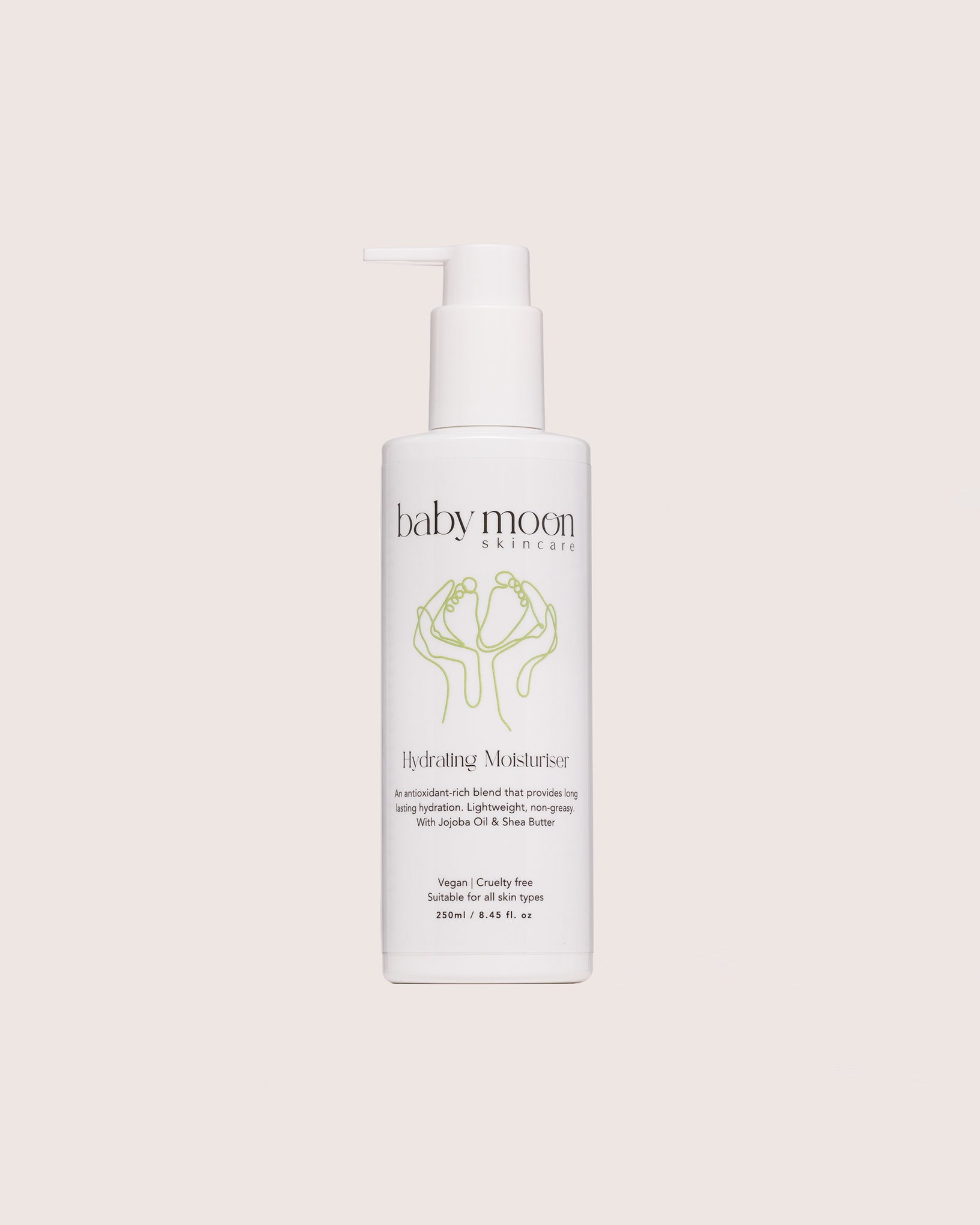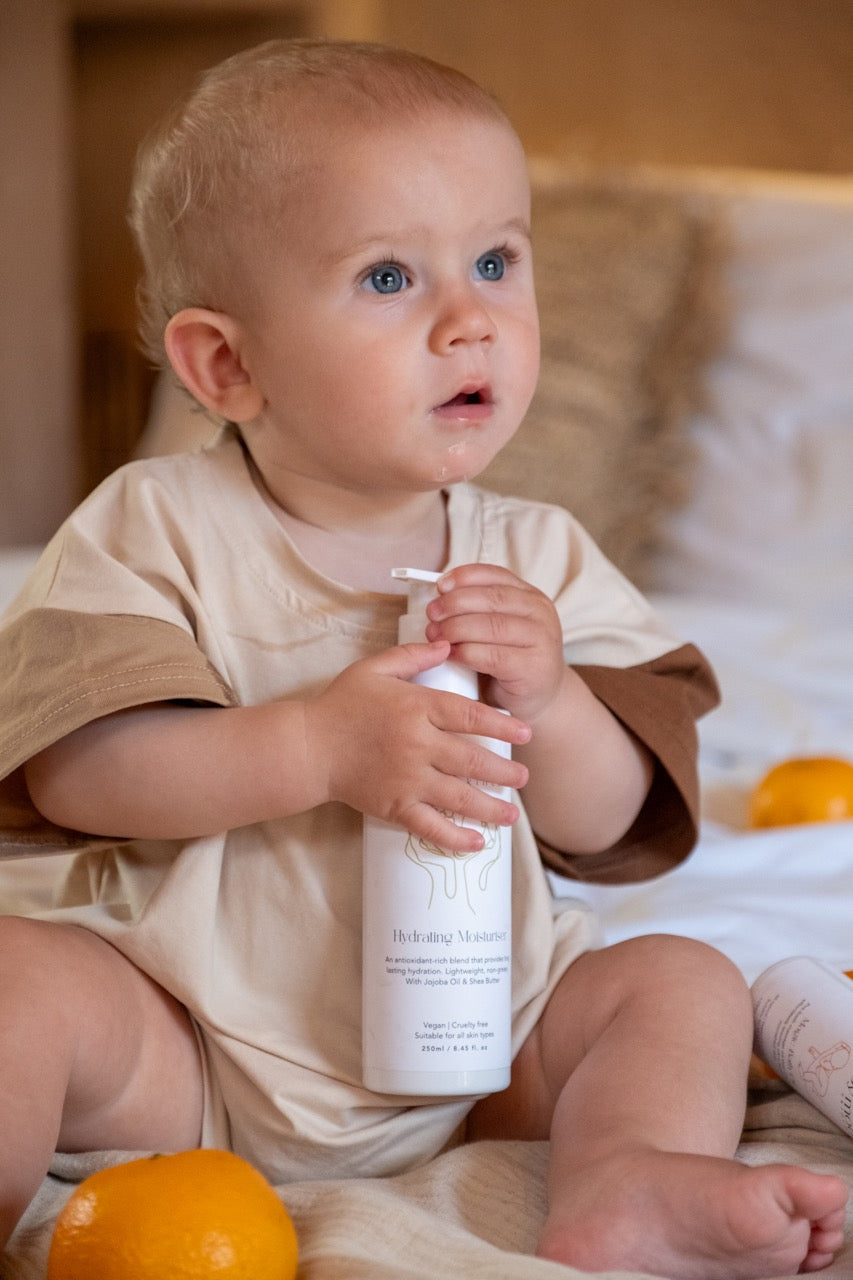 Our Hydrating Moisturiser has been carefully crafted to nurture and protect the most delicate skin. Infused with nourishing plant oils to keep the skin soft and deliver long lasting hydration. Our formula is super lightweight, fast-drying and non-greasy, making it the perfect everyday moisturiser for your little ones!
